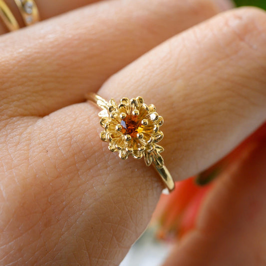Citrine Chrysanthemum Ring, 3mm Birthstone