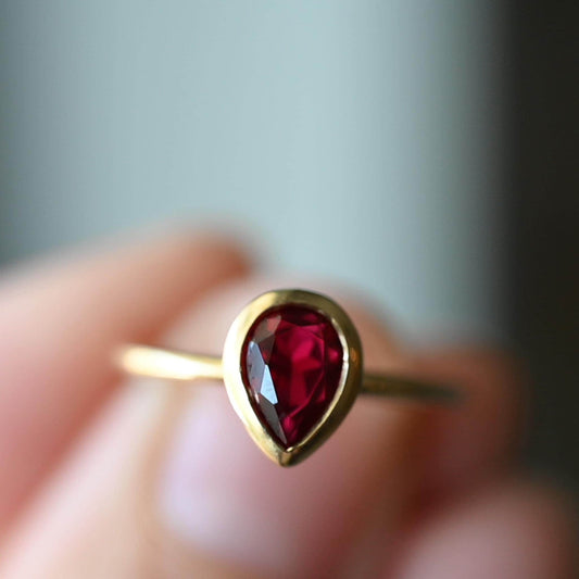 Bezel Set Pear Shaped Ruby Ring -SIZE 5